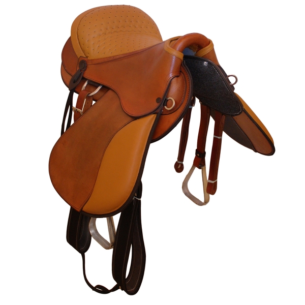 Matérias primas que compõem o produto: Legítimo couro de búfalo, criteriosamente selecionado e tratado, algo que prolonga a vida útil do produto. Couro totalmente liso, sem detalhes. Assento em couro vaqueta (couro automotivo), acolchoado, legítimo e espuma de alta densidade (D60), algo proporciona maior conforto ao cavaleiro. Borrainas em couro vaqueta, com espuma de alta densidade. Ferragens em alumínio polido, totalmente livre de ferrugens, material que deixa o produto mais leve. Possui argolas na parte frontal, para melhor encaixe do peitoral. Suadores em feltro, algo que proporciona maior conforto ao animal. Armação confeccionada em fibra de vidro, totalmente resistente e com maior leveza.