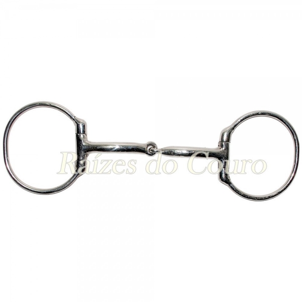 Bridão D, totalmente confeccionado em aço inox (bocal e argolas laterais), centro articulado, altamente resistente, livre de ferrugens e com excelente acabamento, totalmente liso.