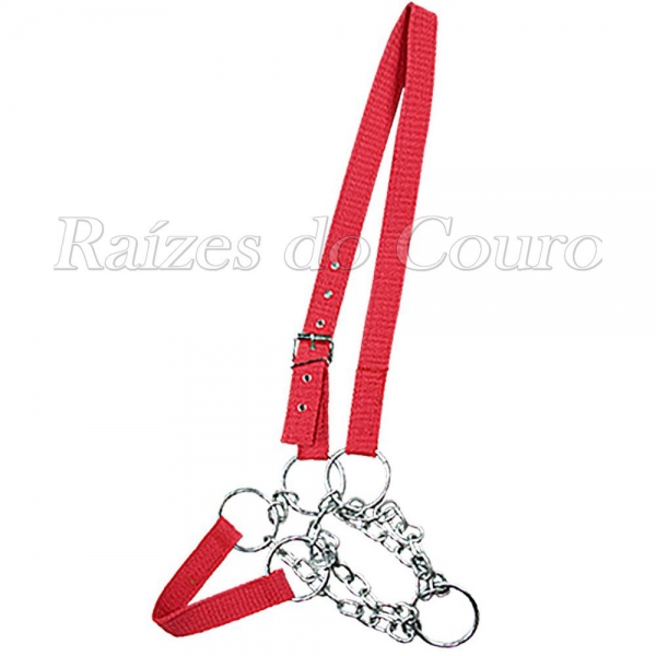 Cabresto com Corrente para Vaca, confeccionado em corrente de ferro e fita cadarço. Possui regulagem na lateral para melhor ajuste do produto. Indicado para uso em animais de grande porte.