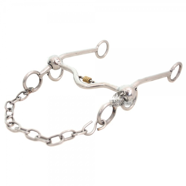 · Freio Stweil com Salivador, confeccionado em aço inox (hastes, bocal, argolas laterais e barbela), bocal baixo com salivador, altamente resistente e com excelente acabamento, totalmente liso. Possui uma barbela na parte superior. Este produto pode ser utilizado na maioria das raças de grande porte.